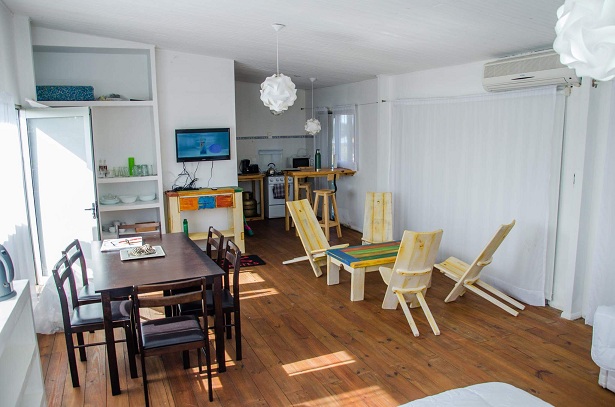 Monoambiente de construcción liviana con kitchenette, baño completo y terraza.