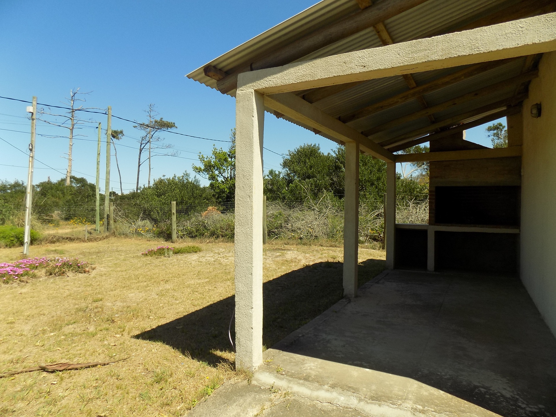 PATIO COMPLETAMENTE CERCADO CON PARRILLERO TECHADO.