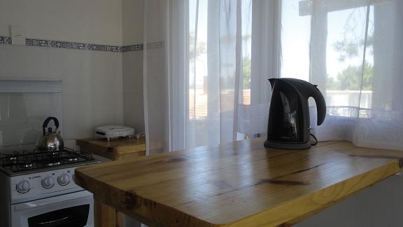 Monoambiente de construcción liviana con kitchenette, baño completo y terraza.